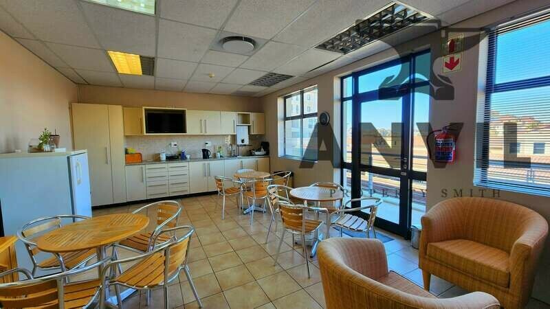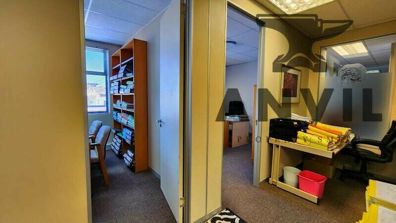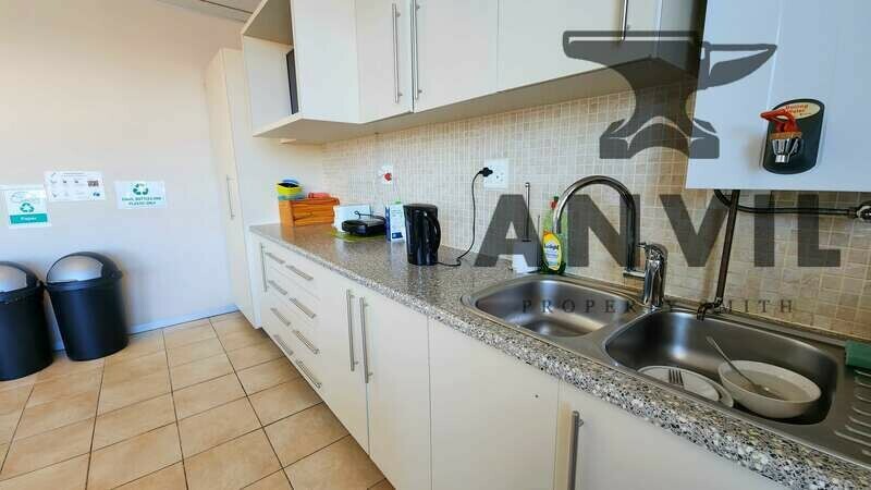 Upon entering the office, you are immediately welcomed by the modern and spacious reception area which also consists of a waiting area for your guests. There are two meeting rooms that can seat 4 people and a spacious boardroom that can easily seat 6-8 people. Following through to the main office, a server room is available for all the networking, 6 private offices with air-conditioning and blinds and a large open plan area that can seat multiple desks. This commercial property in Colosseum also offer it's own private 21m² storeroom. Excellent natural light enters the office from either side of the office and plenty of windows are provided for fresh air as well. The office also has a large kitchenette with ample cupboard space, sink and counter top. There are also plenty of space for seating as well as a small private balcony.