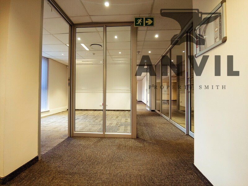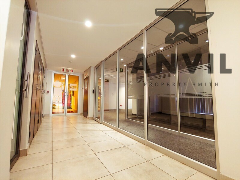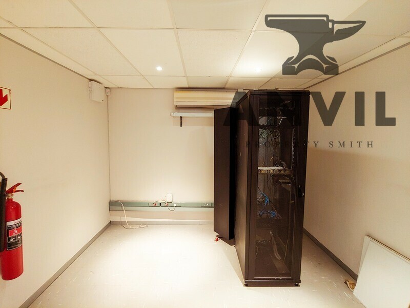 Spacious open plan office to rent in Constantia Kloof. The office has a glass fitted reception with seating area. Air-conditioning installed throughout the office space as well as a server room. The office is on the ground floor and consist of a large boardroom fitted with glass partitioning and spacious meeting room. Large open plan office section and own private kitchenette with built in cupboards and granite counter top. 4 spacious private offices.