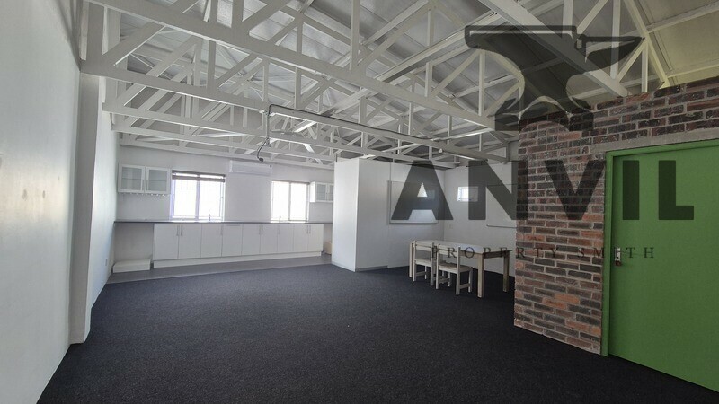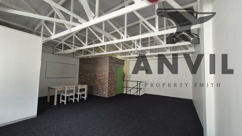This funky, fully fitted office and warehouse in Somerset West is one of the most practical and creative spaces in The Interchange — with power security, parking, and character all in one.